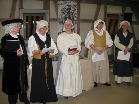 Wie bei den Veranstaltungen der FGW üblich waren alle Mitglieder der Gruppe beteiligt: Illja Widmann und Claudia Nowak berichteten über Maria Andreäs Lebensstationen und Rollen, über die wichtigsten politischen Ereignisse sowie über die Lebensumstände der Menschen in Württemberg im 16. und 17. Jahrhundert.
